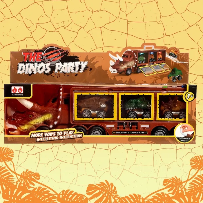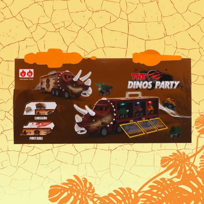 Инерционный грузовик-автовоз в стиле динозавра станет отличным подарком для детей от 3 лет, ведь он сочетает в себе сразу несколько любимых тем: машинки, динозавров и спецтехнику!