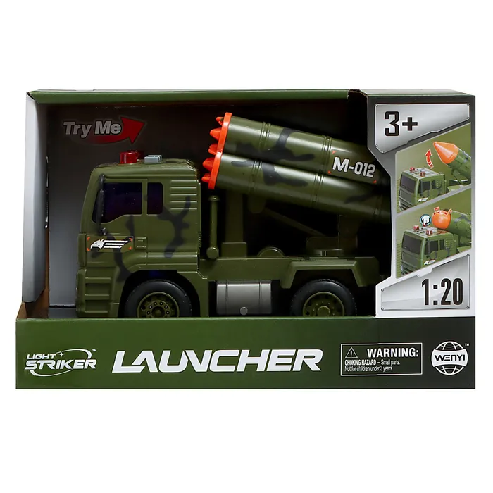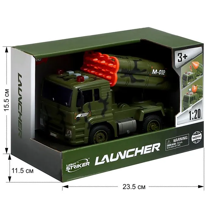 Боевой грузовик для юного стратега! Инерционная машинка «Ракетница» в масштабе 1:20 — это не просто игрушка, а настоящая военная машина. Зелёный фрикционный грузовик приведёт в восторг любого мальчишку, который любит играть в солдатиков.