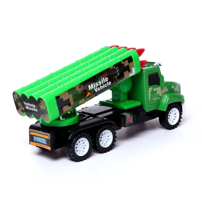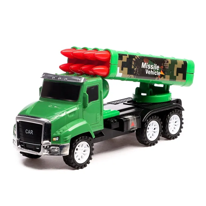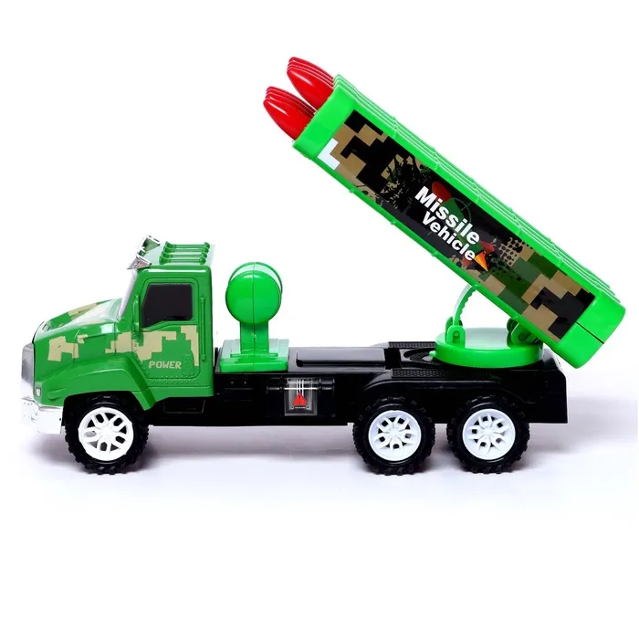 Боевой грузовик «Ракетница» с инерционным механизмом станет отличным дополнением к коллекции военной техники. Он легко приводится в движение: достаточно слегка откатить машину назад и отпустить — и она устремится вперёд. Игрушка выполнена в реалистичном стиле и окрашена в зелёный цвет, что делает её похожей на настоящую боевую технику.