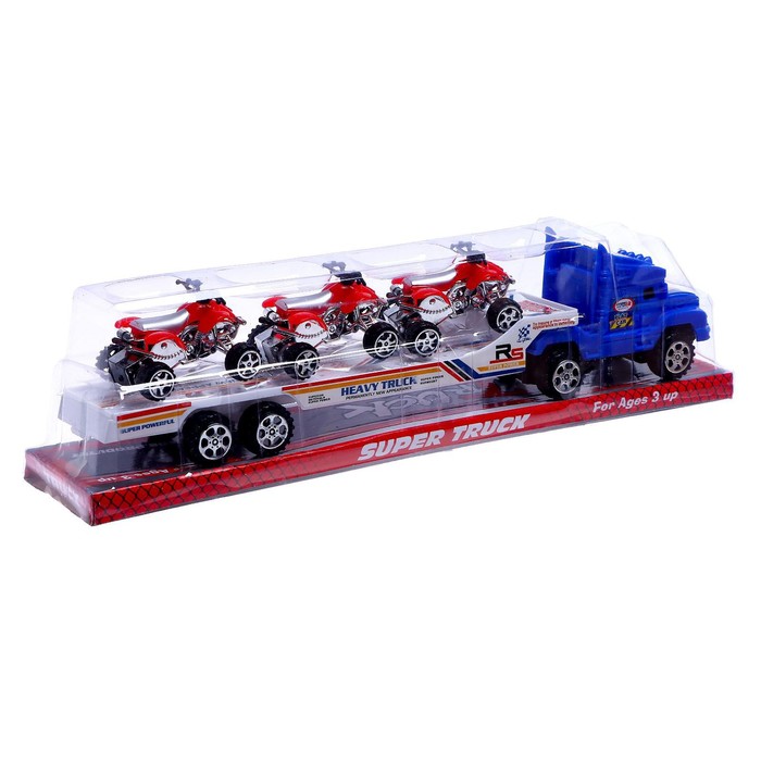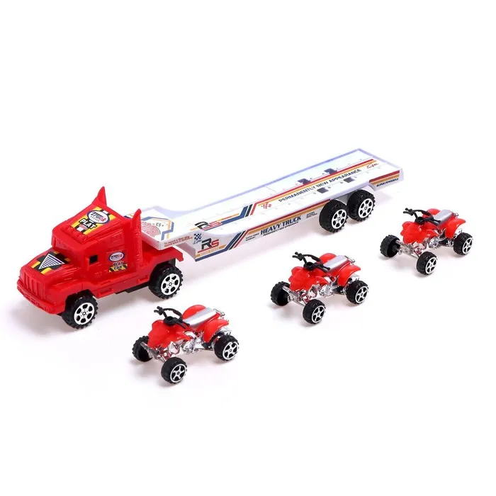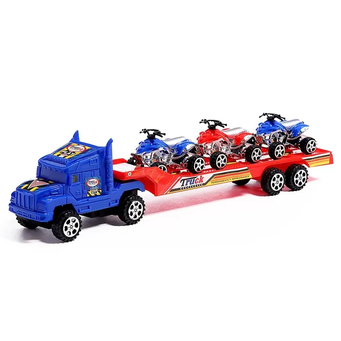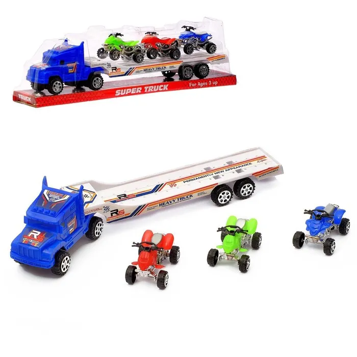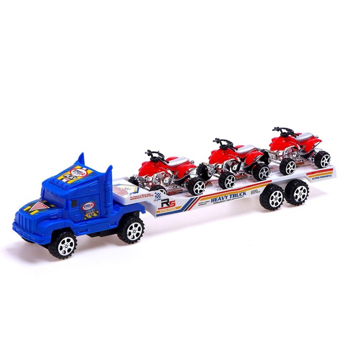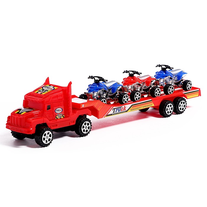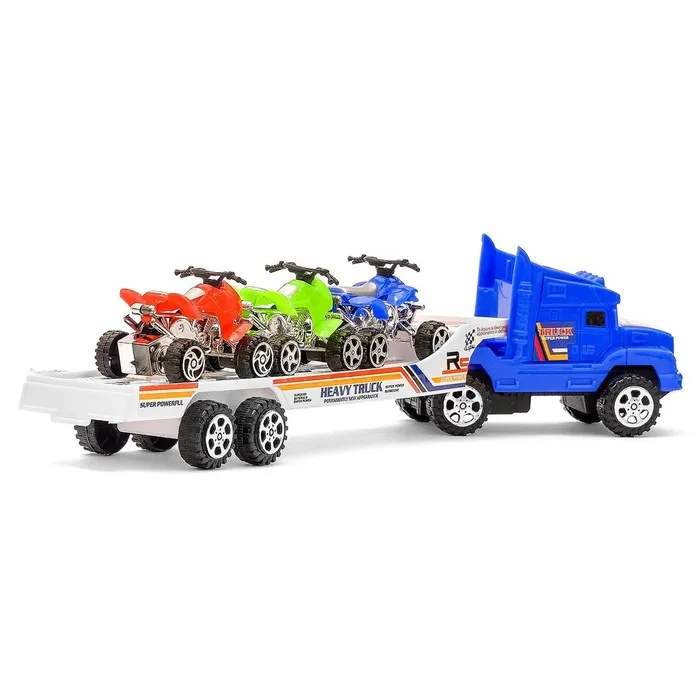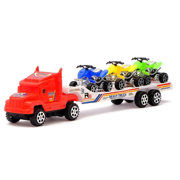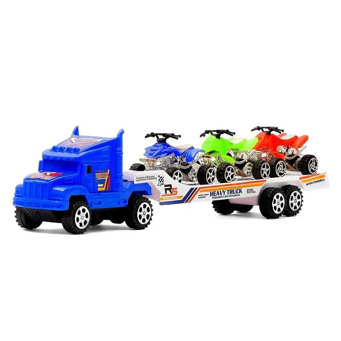 Грузовик инерционный «Трейлер», с 3 квадроциклами, цвета МИКС — Характеристики