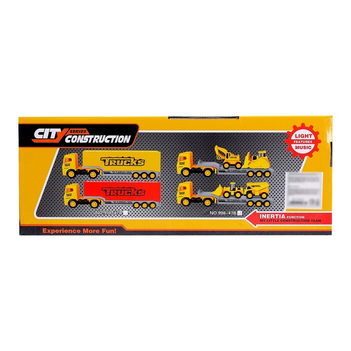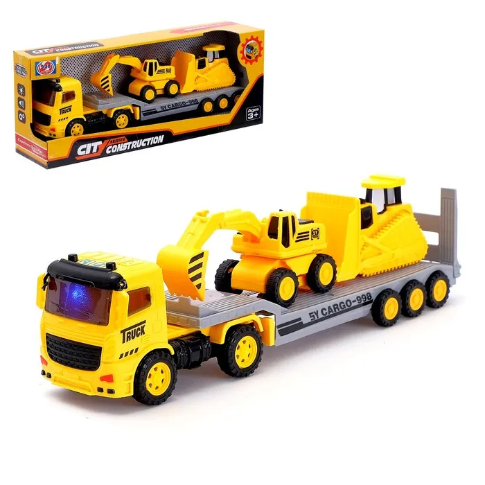 Грузовик инерционный «Трейлер» с спецтехникой, световые эффекты, МИКС — Характеристики