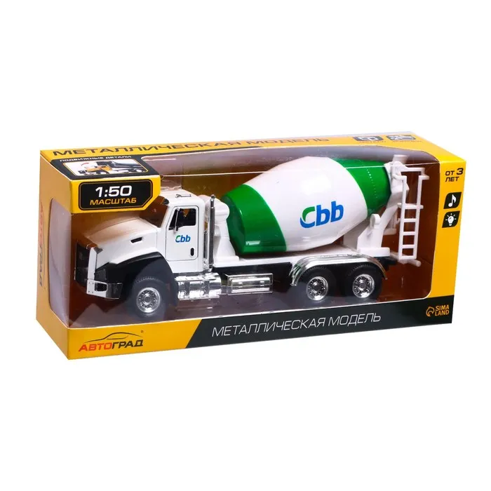 Грузовик металлический «Бетон», инерция, открываются двери, свет и звук — Характеристики