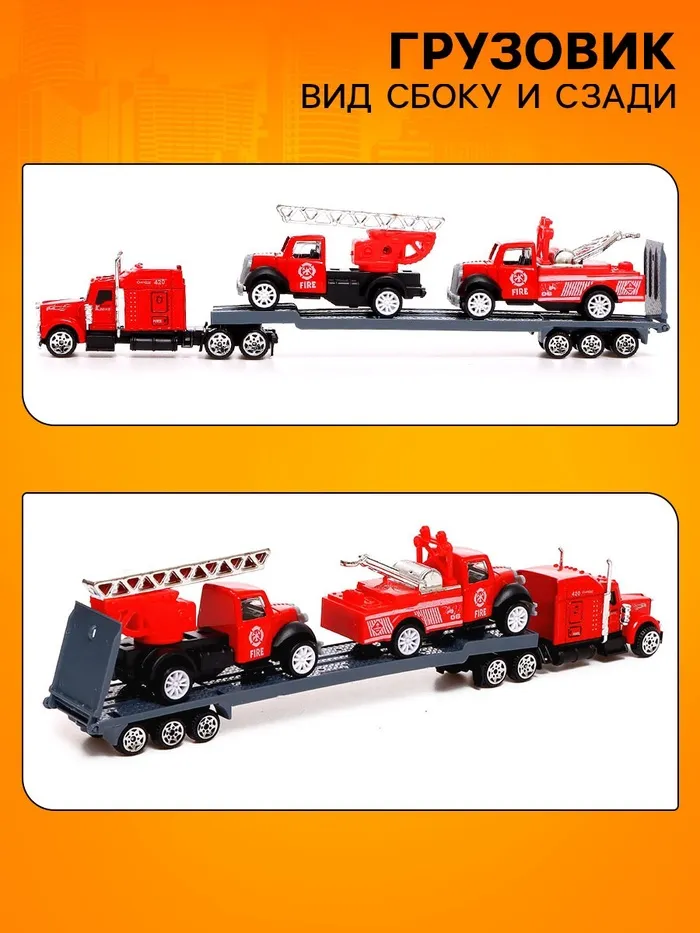 Грузовик металлический «Пожарная служба», инерционный, с 2 машинками — Характеристики