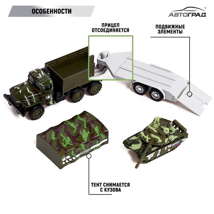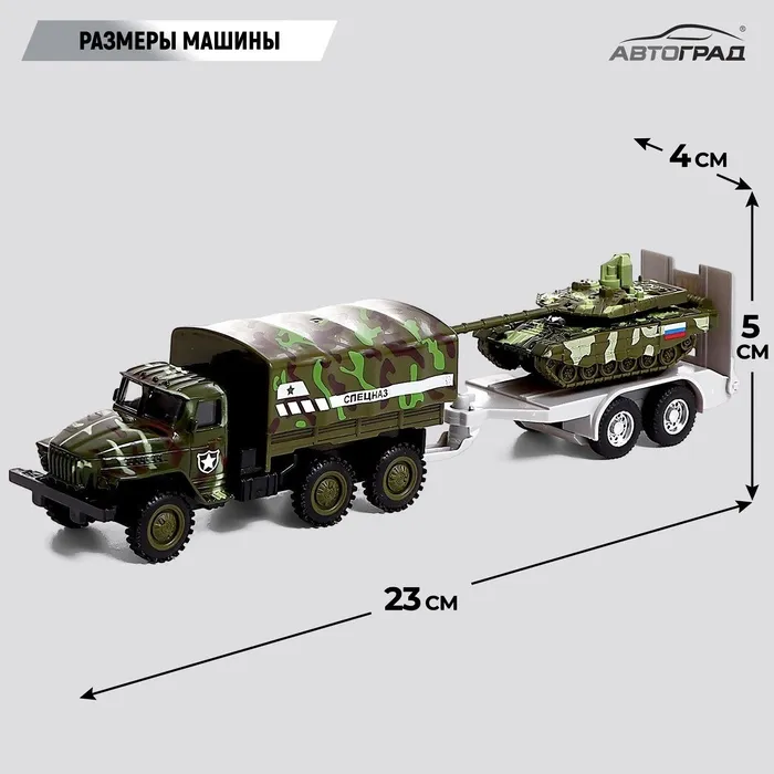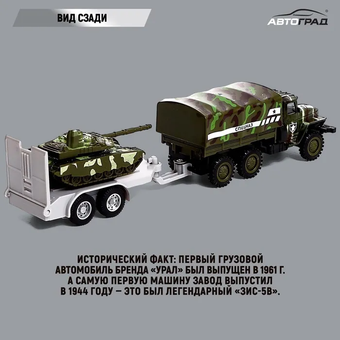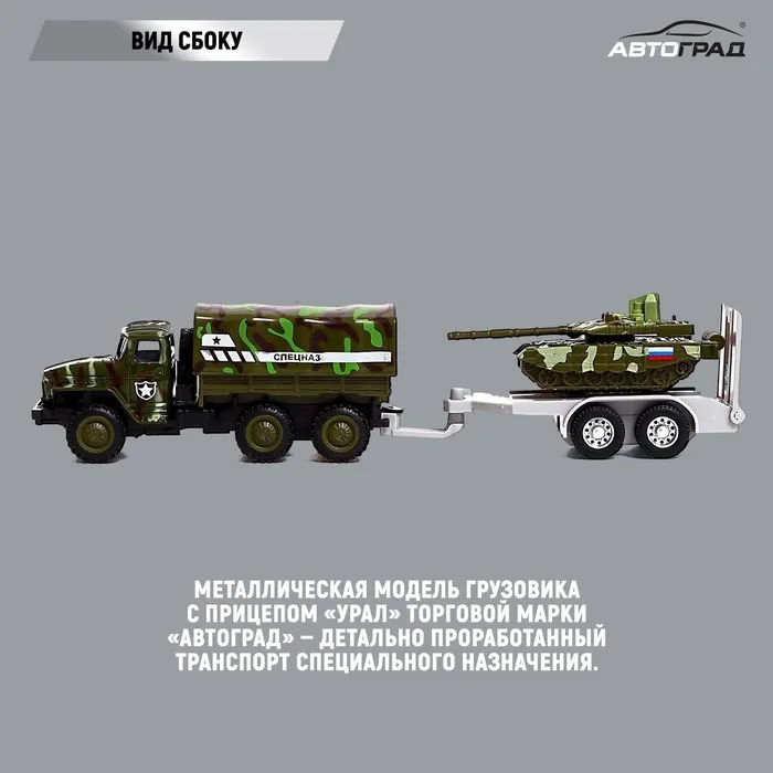 Металлическая модель грузовика с прицепом «Урал» торговой марки «Автоград» — детально проработанный транспорт специального назначения. Машинка дополнит игрушечный автопарк и станет прекрасным подарком для маленького любителя техники.