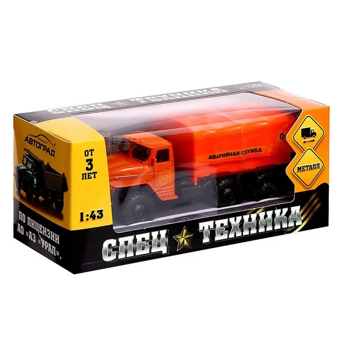 Грузовик металлический «УРАЛ «Аварийная служба», инерция, масштаб 1:43 — Характеристики