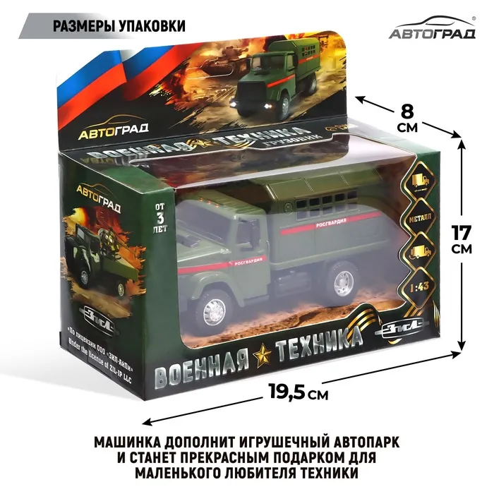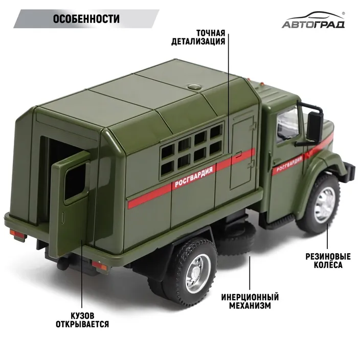 Грузовик металлический «ЗИЛ Росгвардия», инерция, масштаб 1:43, подвижные детали кузова — Характеристики
