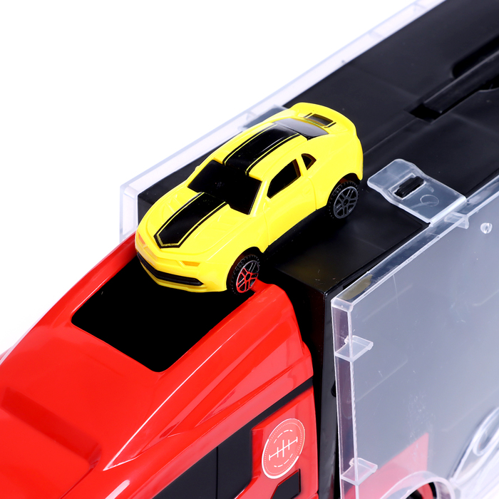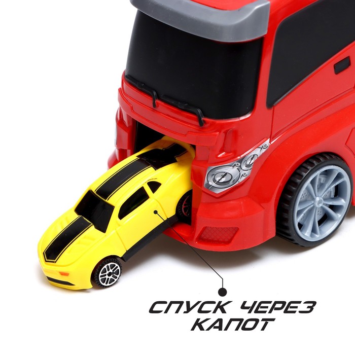 «Перевозчик» готов доставить спорткары для скоростных соревнований в любое время и в любое место. Загрузите машины в кузов автомобиля и начинайте игру. С яркими болидами сюжетам не будет предела! Ребёнок устроит настоящие гонки и будет состязаться с друзьями в быстрой и манёвренной езде.
