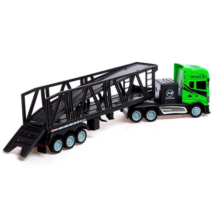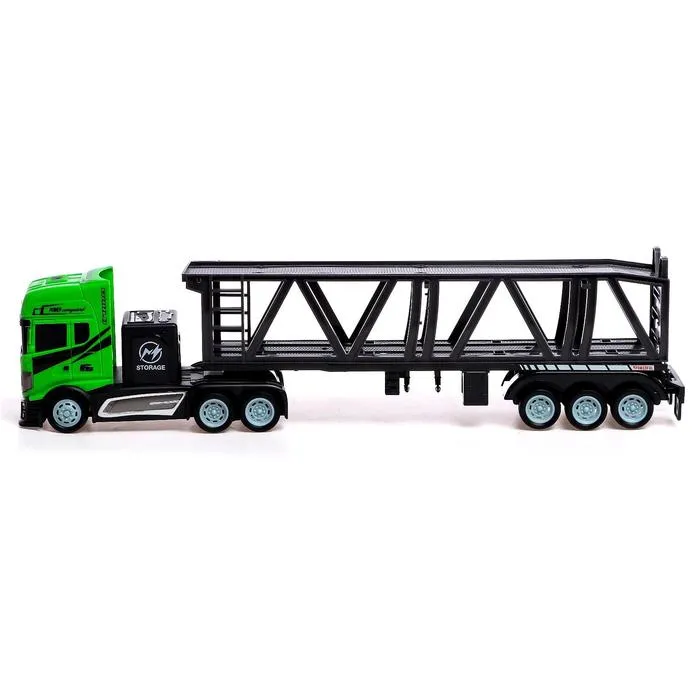 - Удобное управление: пульт радиоуправления работает от батареек типа AA и имеет радиус действия до 50 метров. Управлять автовозом легко даже малышам: просто нажмите кнопку, и грузовик поедет вперёд, назад или в сторону.