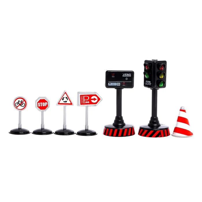 - Интерактивный город: светофор с ручным переключением режимов и камера с подсветкой и звуком делают игру ещё интереснее. Дорожные знаки помогают ребёнку изучать правила дорожного движения, превращая игру в познавательное занятие.