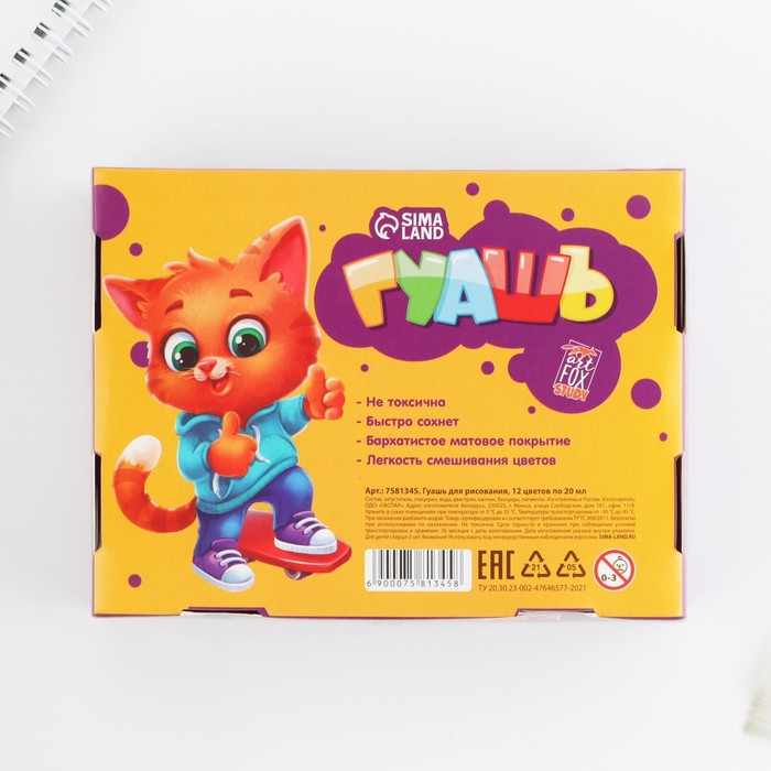 Гуашь 12 цветов 20 мл художественная — Характеристики
