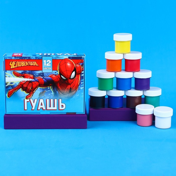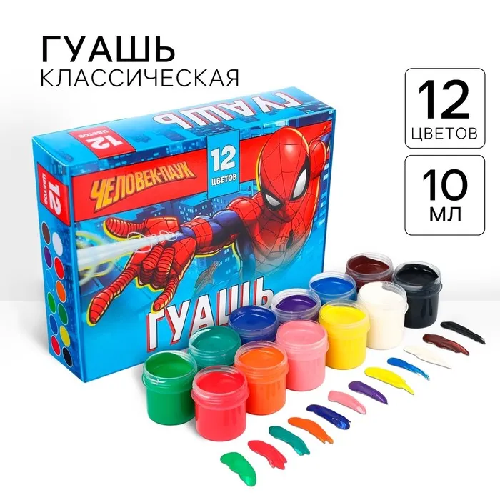 Гуашь 12 цветов по 10 мл, «Человек-паук» — Характеристики