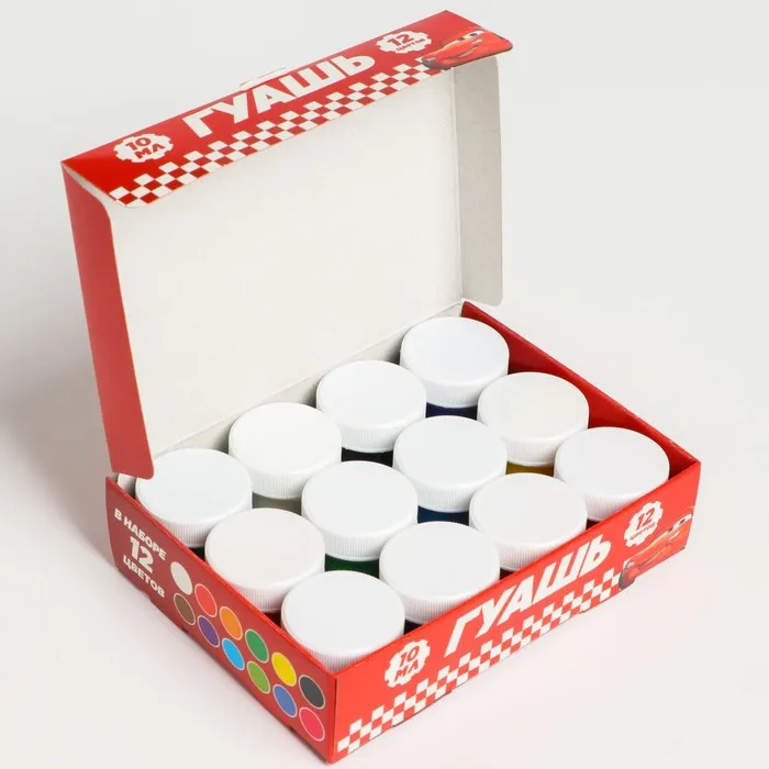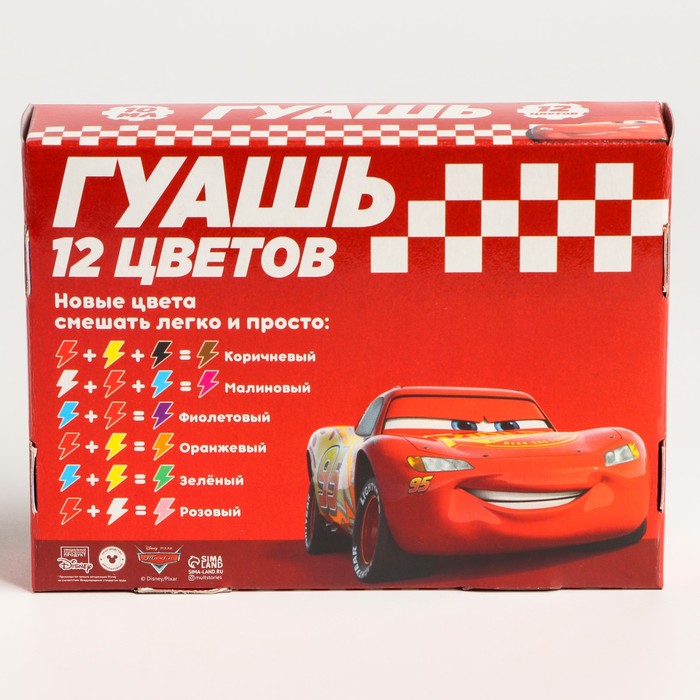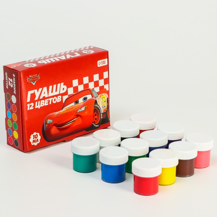Гуашь 12 цветов по 10 мл, «Тачки» — Характеристики