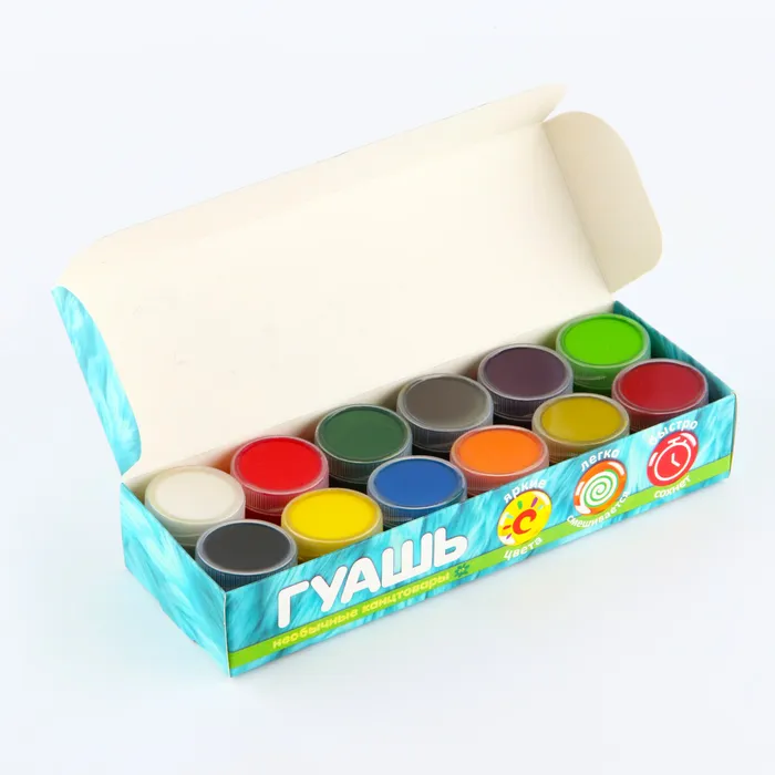 Гуашь — одна из самых популярных красок для детского творчества. Имеет яркий и насыщенный цвет, отлично ложится на любой вид поверхности, безопасна при использовании. Её можно применить практически в любом стиле и даже в самых необычных сочетаниях. Быстро сохнет и не имеет резкого запаха.