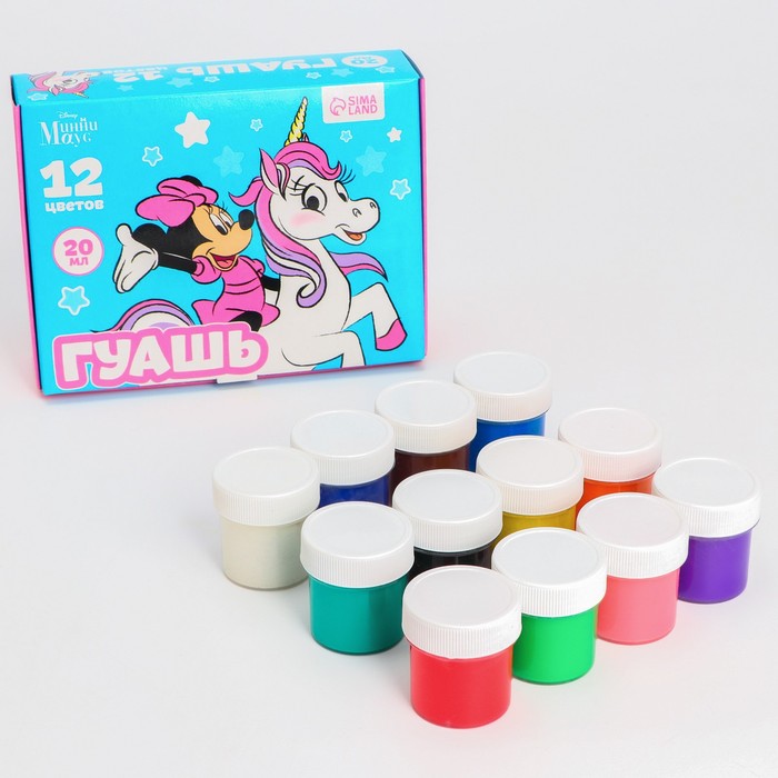 Гуашь 12 цветов по 20 мл, «Единорог», Минни Маус — Характеристики