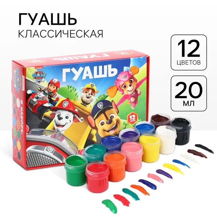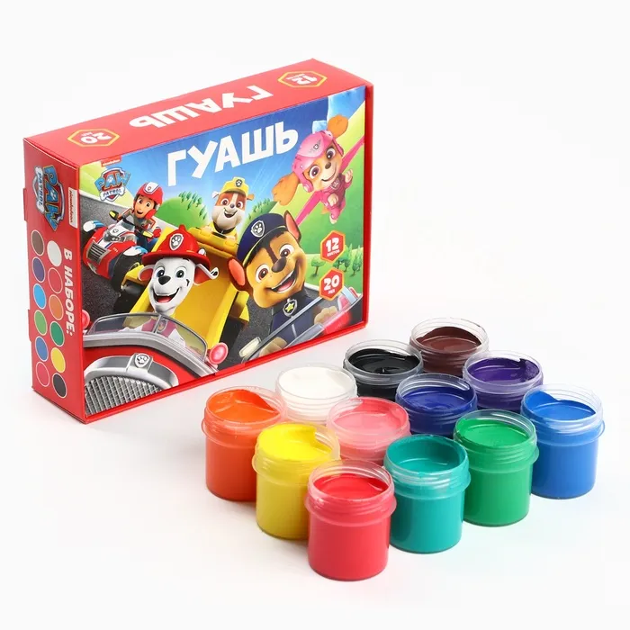 Гуашь 12 цветов по 20 мл, «Щенячий патруль» — Характеристики