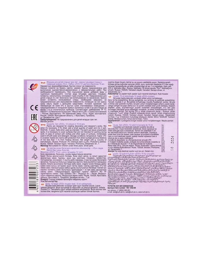 Гуашь 12 цветов × 15 мл ZOO поможет вашему ребёнку создавать красивые яркие картинки, выдумывать невероятные сюжеты и воплощать их в реальность, развивая цветовое восприятие, зрительную память, воображение, мелкую моторику пальцев, ассоциативное, аналитическое и творческое мышление.