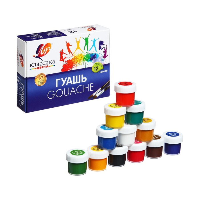 Гуашь 12 цветов × 20 мл «Классика» поможет вашему ребёнку создавать красивые яркие картинки, выдумывать невероятные сюжеты и воплощать их в реальность, развивая цветовое восприятие, зрительную память, воображение, мелкую моторику пальцев, ассоциативное, аналитическое и творческое мышление.