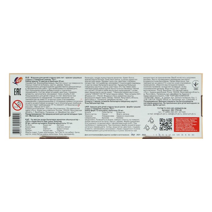 Гуашь "Школа творчества" изготовлена по улучшенной рецептуре. Благодаря этому цвета краски, не теряя своей яркости и красоты, стали максимально подготовлены для быстрого рисования. Краску не нужно предварительно сильно разбеливать и тратить при этом много белил. Благодаря меньшему расходованию белил из набора, цвета красок теперь будут заканчиваться равномерно, что позволит использовать набор более рационально. При высыхании краска не выцветает, приобретает бархатистую поверхность, имеет отличную укрывистость. Гуашь легко смывается с рук и одежды. Не имеет неприятного запаха. Абсолютно безопасна для детского творчества.
