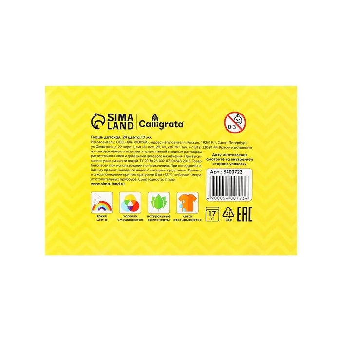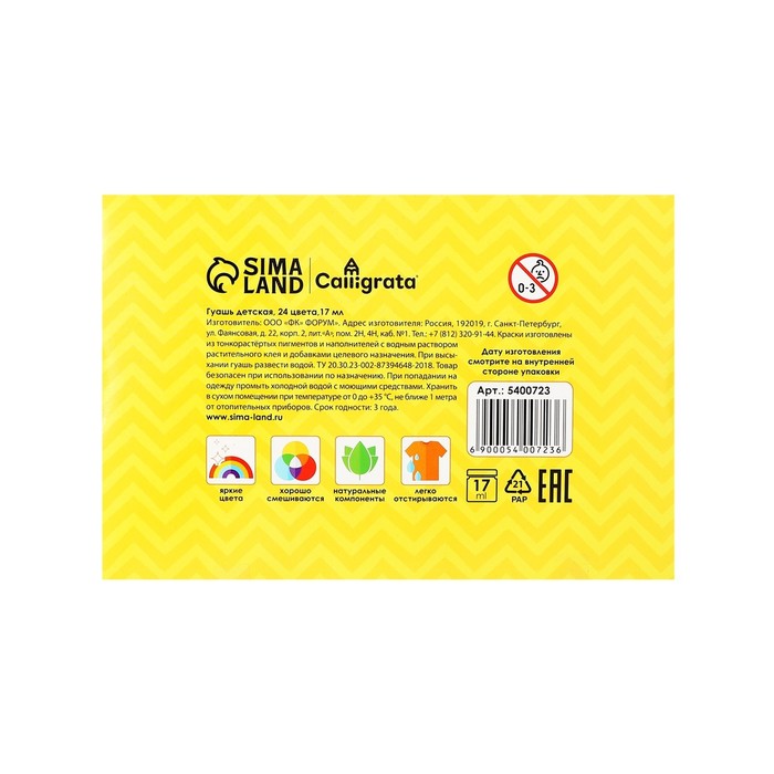 Гуашь 24 цвета × 17 мл Calligrata — Характеристики