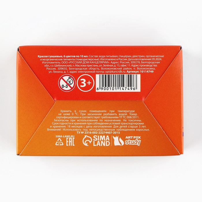 Гуашь 6 цветов по 10 мл художественная — Характеристики