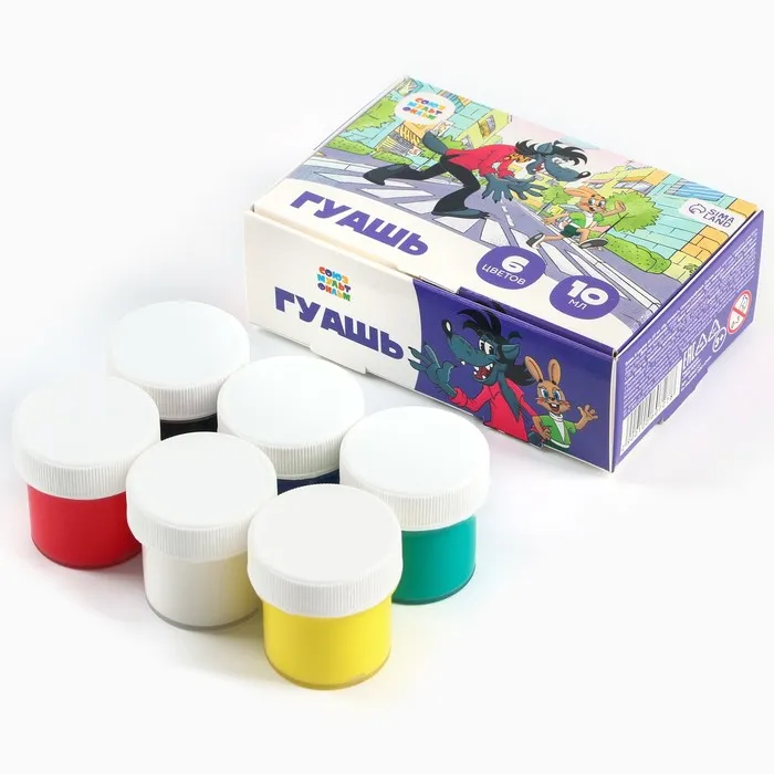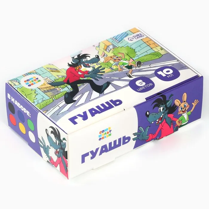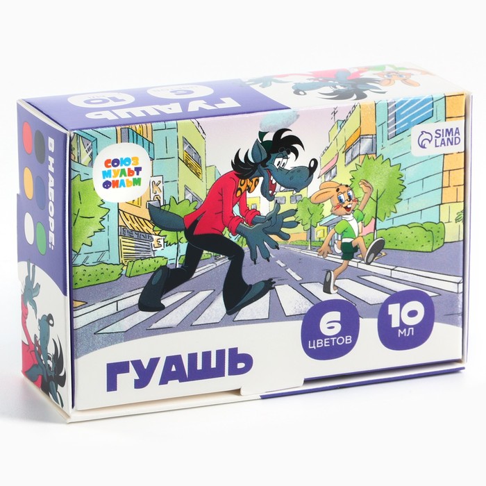 Гуашь 6 цветов по 10 мл, «Ну, погоди!», Союзмультфильм — Характеристики