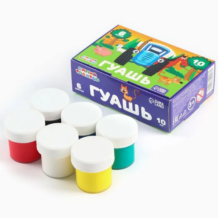 Гуашь 6 цветов по 10 мл, «Синий трактор» — Характеристики