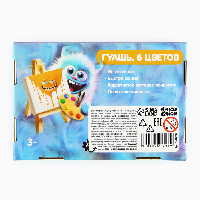 Гуашь 6 цветов по 20 мл «Буки Бяки» — Характеристики