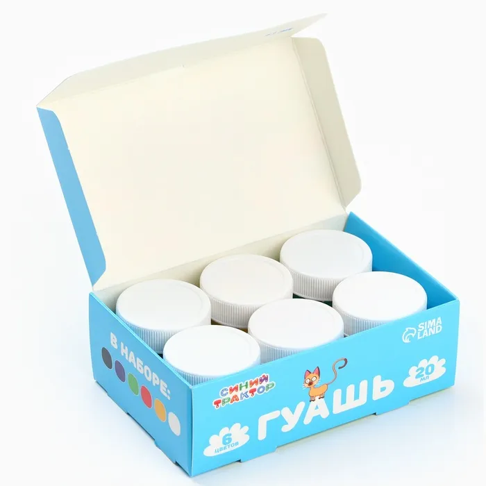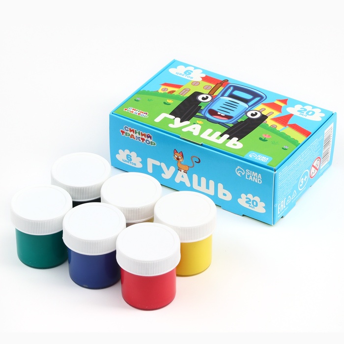Гуашь 6 цветов по 20 мл, «Синий трактор» — Характеристики