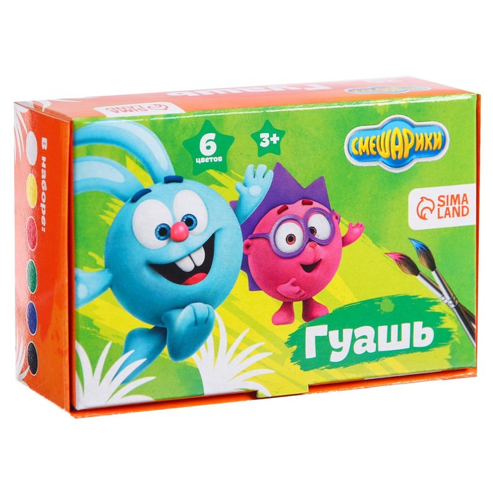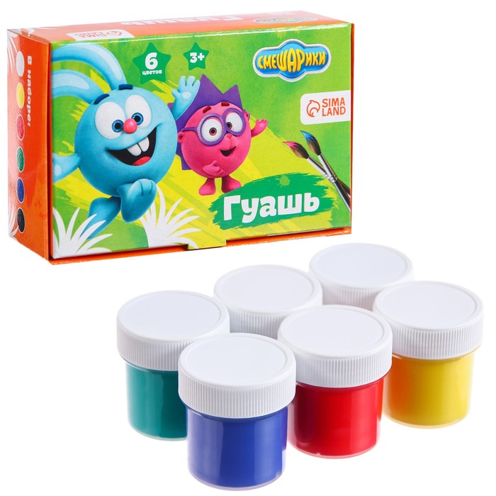Гуашь 6 цветов по 20 мл, «Смешарики», карамельная — Характеристики