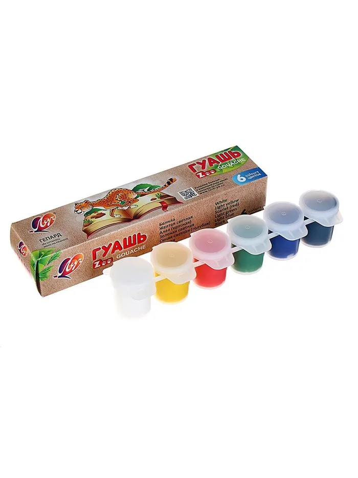 Гуашь 6 цветов × 15 мл ZOO, блок-тара поможет вашему ребёнку создавать красивые яркие картинки, выдумывать невероятные сюжеты и воплощать их в реальность, развивая цветовое восприятие, зрительную память, воображение, мелкую моторику пальцев, ассоциативное, аналитическое и творческое мышление.