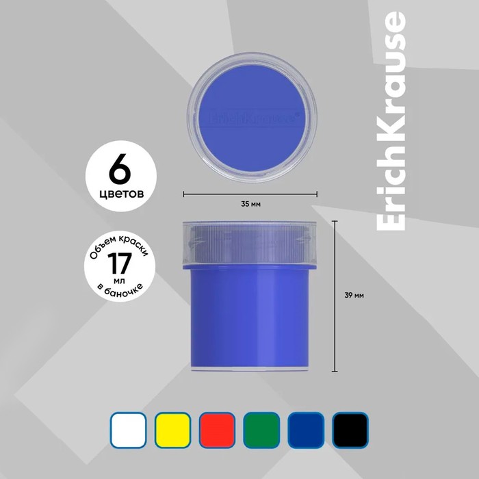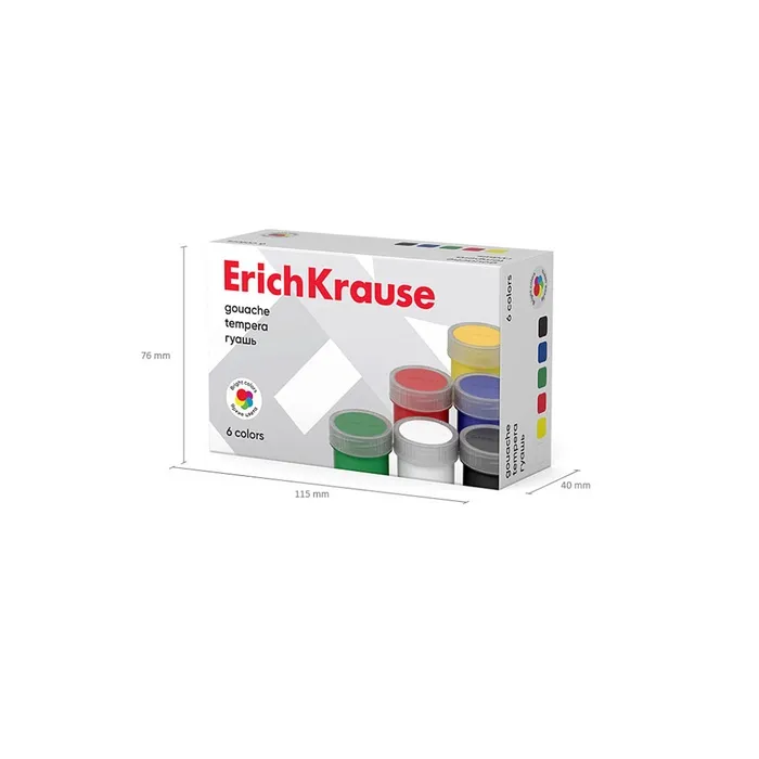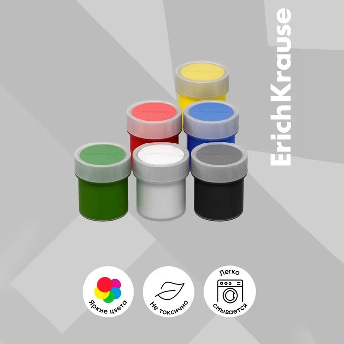 Гуашь ErichKrause®. Рисунки, выполненные такими красками, дольше сохраняют сочные цвета. Гуашь обладает насыщенными плотными цветами с высокой укрывистостью, при рисовании ровно ложится на бумагу и быстро высыхает, после высыхания рисунок приобретает матово-бархатистую поверхность. Безопасная гуашь ErichKrause® на водной основе, легко смывается с рук и отстирывается с большинства видов ткани и бытовых поверхностей, она не токсична, изготавливается из экологичных материалов.
