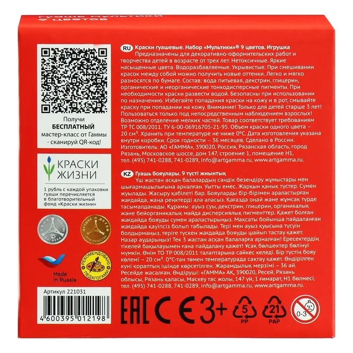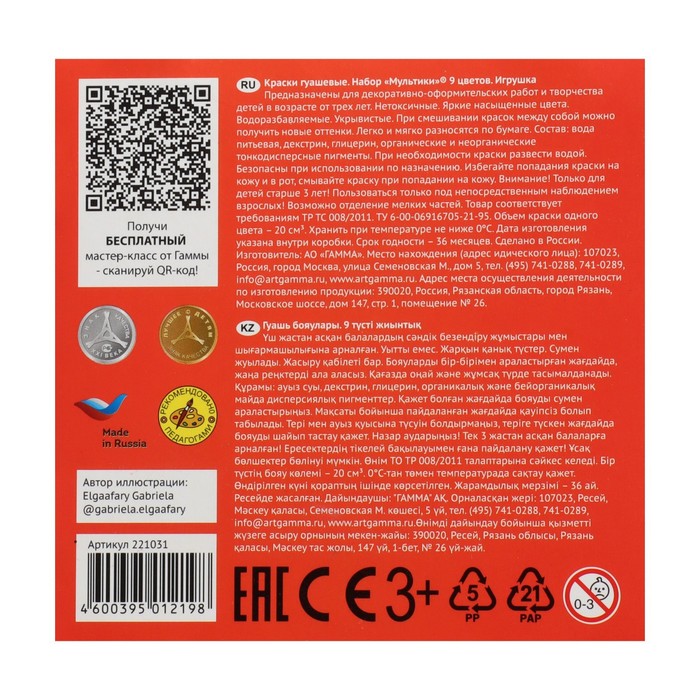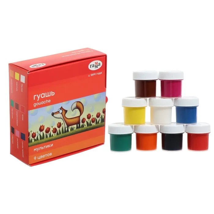 Гуашь 9 цветов × 20 мл «Гамма. Мультики» поможет вашему ребёнку создавать красивые яркие картинки, выдумывать невероятные сюжеты и воплощать их в реальность, развивая цветовое восприятие, зрительную память, воображение, мелкую моторику пальцев, ассоциативное, аналитическое и творческое мышление.