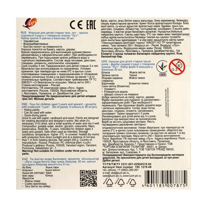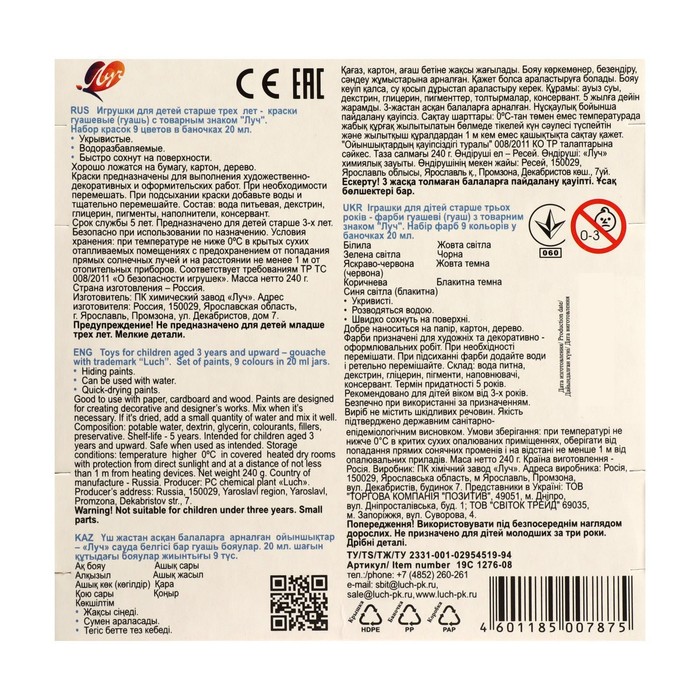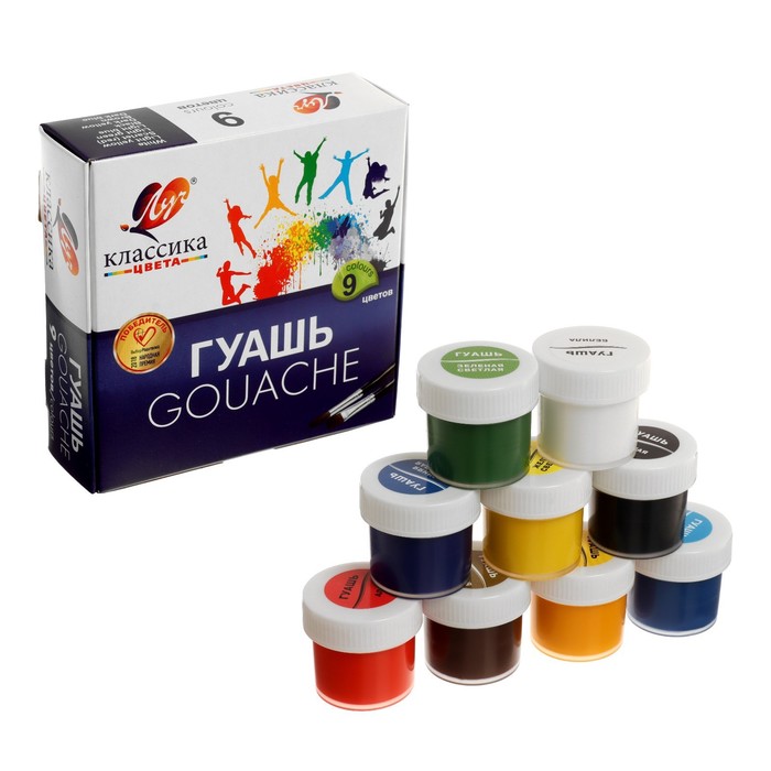 Гуашь 9 цветов × 20 мл «Классика» поможет вашему ребёнку создавать красивые яркие картинки, выдумывать невероятные сюжеты и воплощать их в реальность, развивая цветовое восприятие, зрительную память, воображение, мелкую моторику пальцев, ассоциативное, аналитическое и творческое мышление.