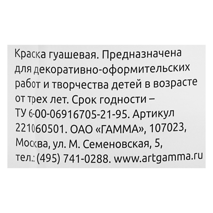 Гуашь «Гамма. Классическая», 500 мл, белила титановые — Характеристики