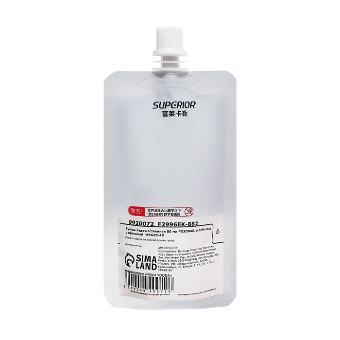 Гуашь художественная, 80 мл, в дой-паке с крышкой, розовая — Характеристики