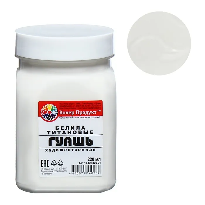 Гуашь художественная в банке 220 мл, Колер Продукт, белила титановые — Характеристики