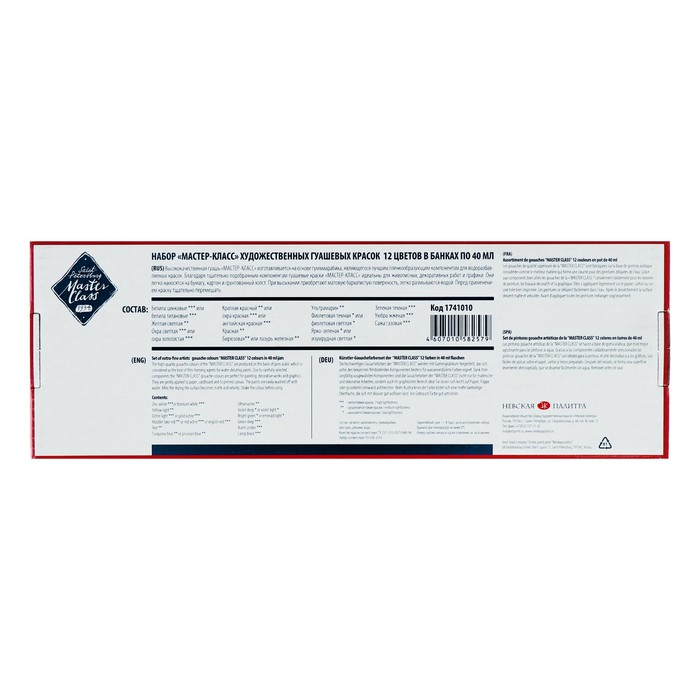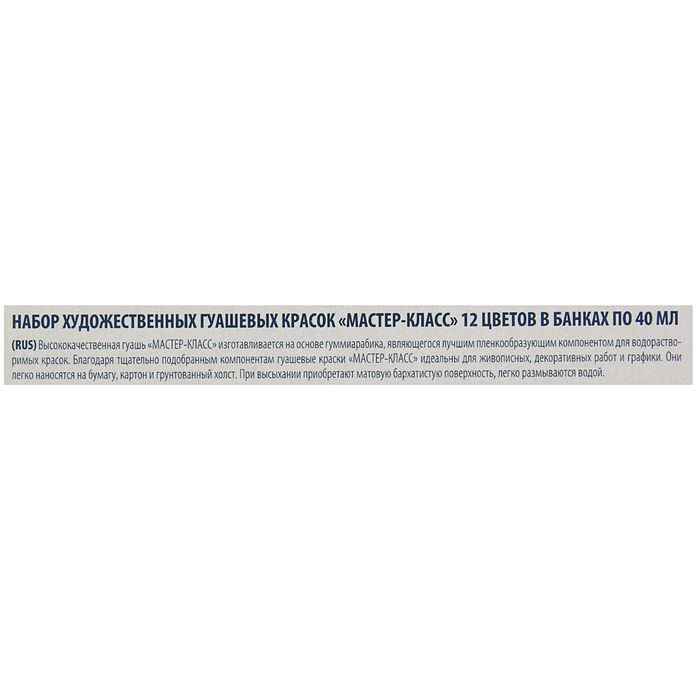Гуашь художественная «ЗХК. Мастер класс», набор 12 цветов × 40 мл, (1741010) — Характеристики