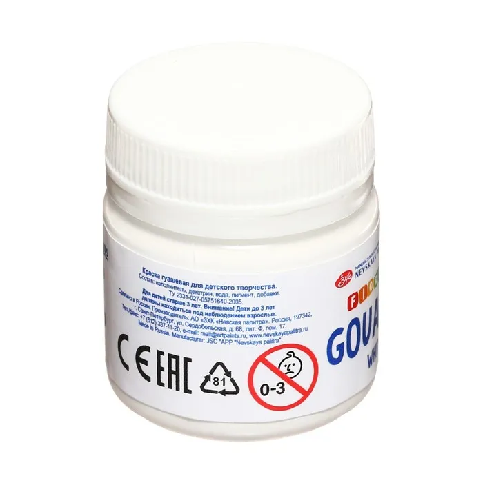 Гуашь в банке «ЗХК. Цветик», 40 мл, белая, 3020104 — Характеристики