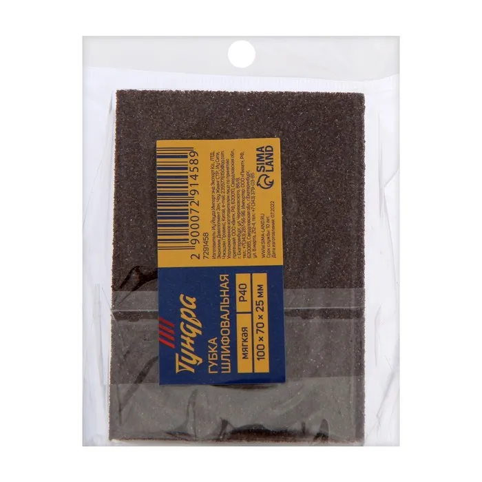 Губка абразивная шлифовальная ТУНДРА, мягкая, 100×70×25 мм, P40 — Характеристики