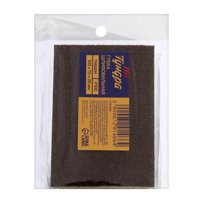 Губка абразивная шлифовальная ТУНДРА, твердая, 100×70×25 мм, P100 — Характеристики