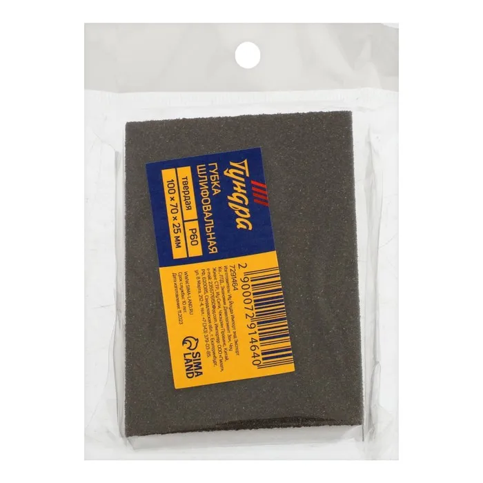 Губка абразивная шлифовальная ТУНДРА, твердая, 100×70×25 мм, P60 — Характеристики