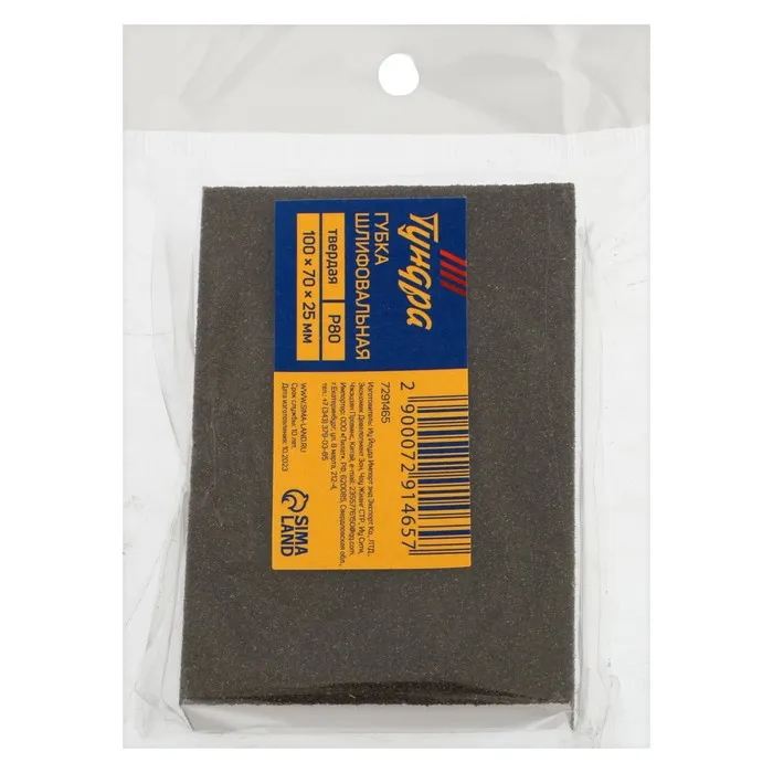 Губка абразивная шлифовальная ТУНДРА, твердая, 100×70×25 мм, P80 — Характеристики