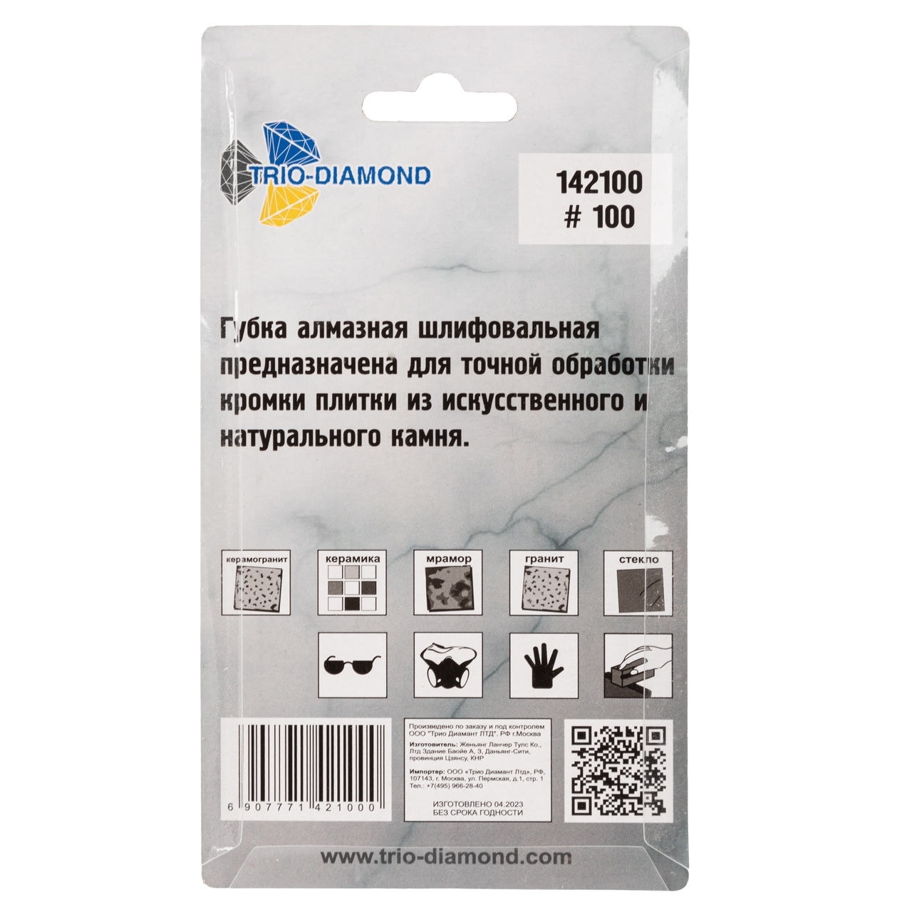 Идеальное решение для мастеров, работающих с керамогранитом, гранитной и мраморной плиткой, а также керамической плиткой. Губка TRIO-DIAMOND с зернистостью 100 позволяет быстро и качественно шлифовать различные поверхности, обеспечивая гладкость и ровность.
