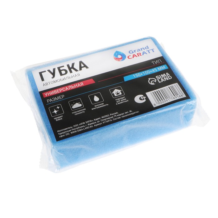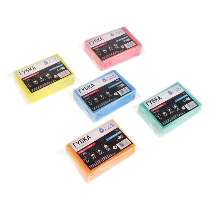 Губка автомобильная Grand Caratt, 150 х 100 х 45 мм, микс — Характеристики
