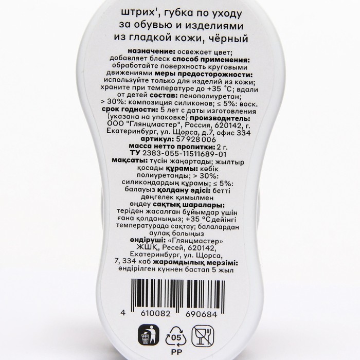 Губка для гладкой кожи Штрих, "Компакт" черная — Характеристики