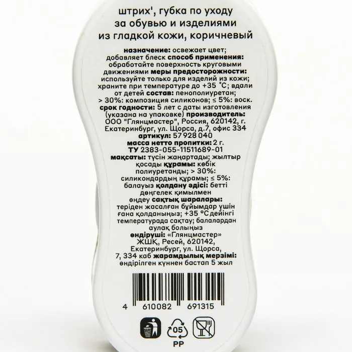Губка для гладкой кожи Штрих, "Компакт" коричневая — Характеристики