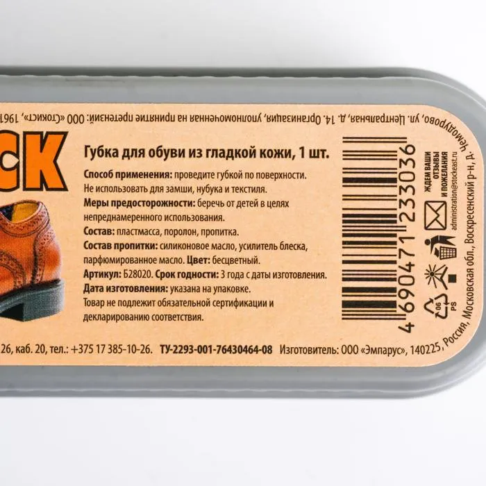 Используйте губку, чтобы избавиться от поверхностных загрязнений, вернуть блеск и защитить обувь или другое изделие от влаги и грязи.