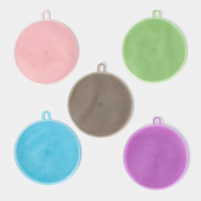 Губка для посуды Доляна, 11×11×1 см, силиконовая, МИКС — Характеристики