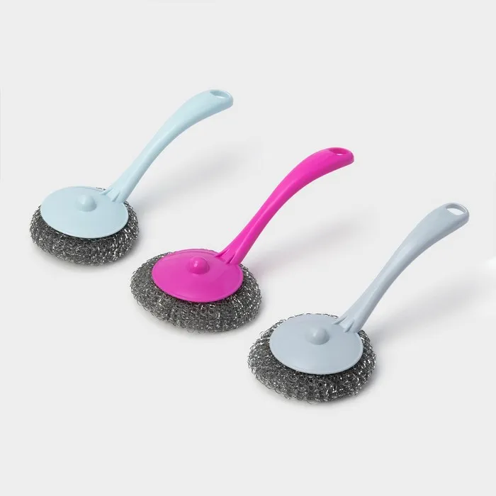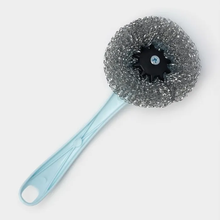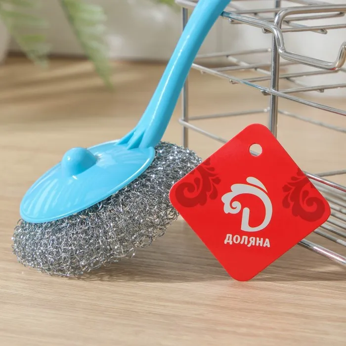Губка для посуды Доляна «Бублик», с ручкой, металлическая, 15 гр, цвет МИКС — Характеристики