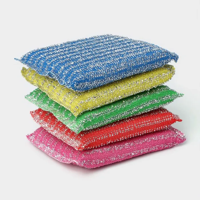 Губка для посуды Доляна, со стальной стружкой, 12×9×1.5 см, МИКС — Характеристики